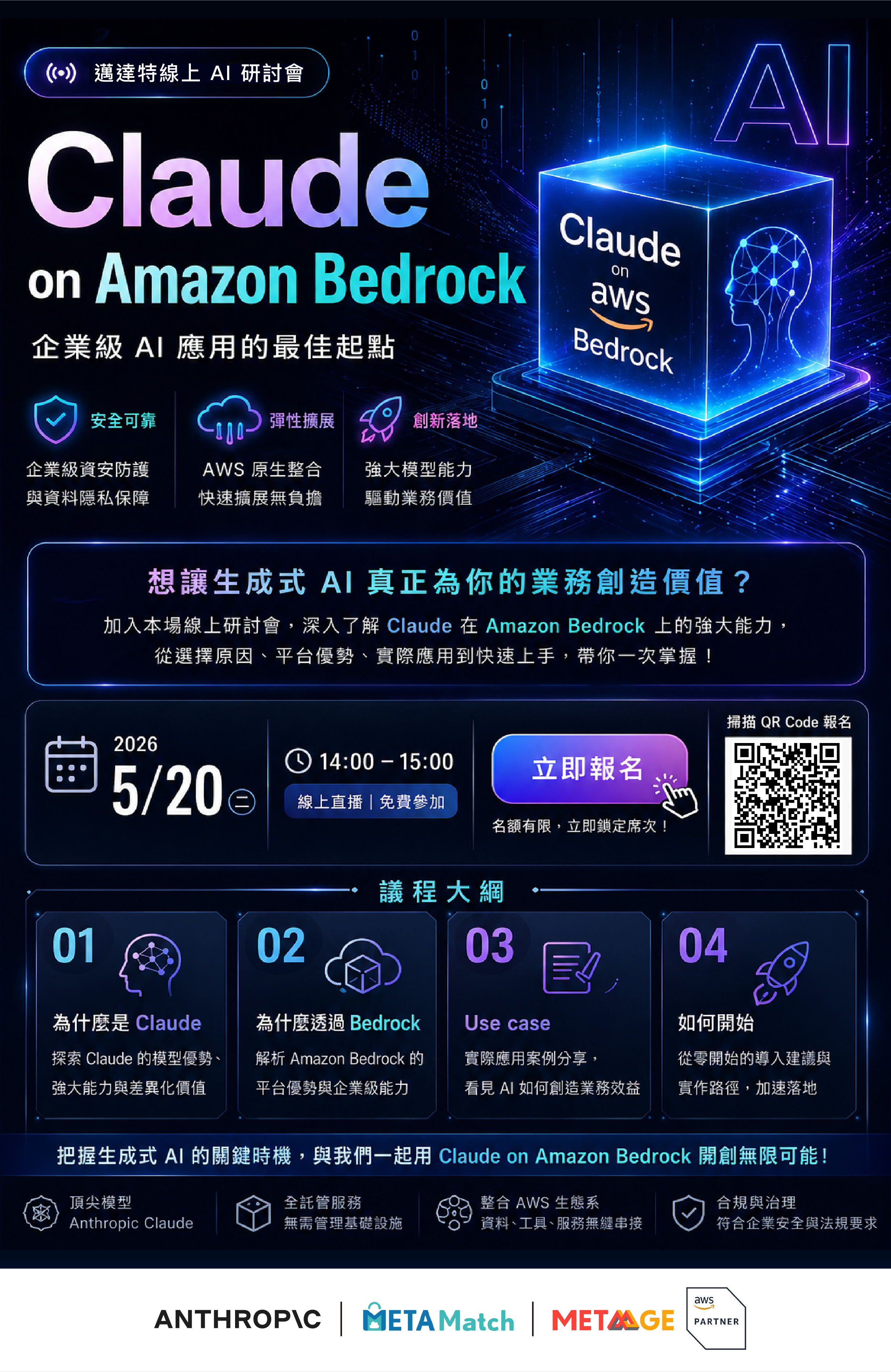 地點及地址 日期與時間 報名連結 線上研討會(審核通過後將寄發報名連結,敬請留意 Email) 2026/05/20