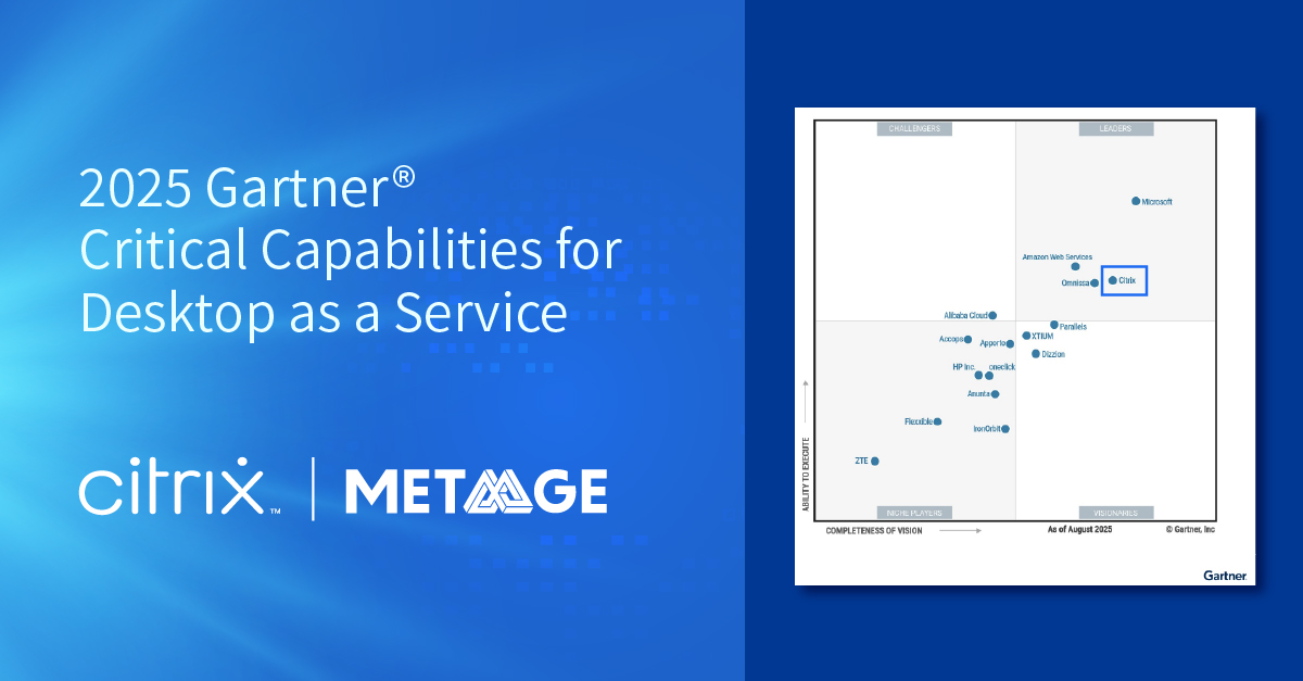 虛擬桌面、遠端存取及應用程式交付的全球領導品牌 Citrix,近日再度榮獲 Gartner® 2025 Desktop as a Service(DaaS)魔力象限領導者殊榮。這是 Citrix 連續第三年獲此殊榮,今年 Citrix 更在「本地/混合環境」、「遠端工作」、「安全與合規性」、「高效能」與「客製化企業架構」五大評比項目中均排名第一,彰顯其在市場的領導地位與深厚技術實力。