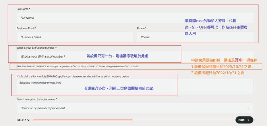 步驟四(Case 完成會收到系統自動回覆 case number)