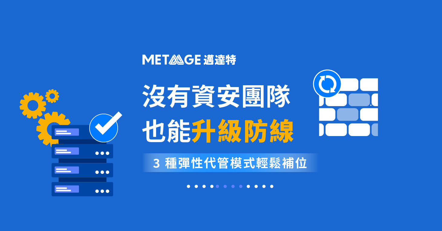 台灣許多企業知道資安重要,但人力現實就是如此。MetaAge 邁達特的 7×24 資安代管中心(MSP),可以依照企業的狀況,提供以下 3 種彈性支援模式: