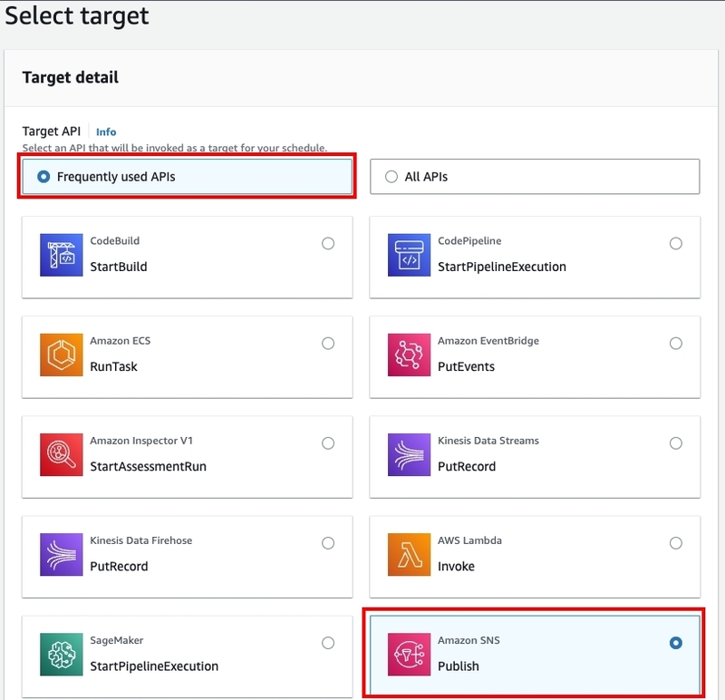 1. SNS topic:選擇發佈信息的Topic;
