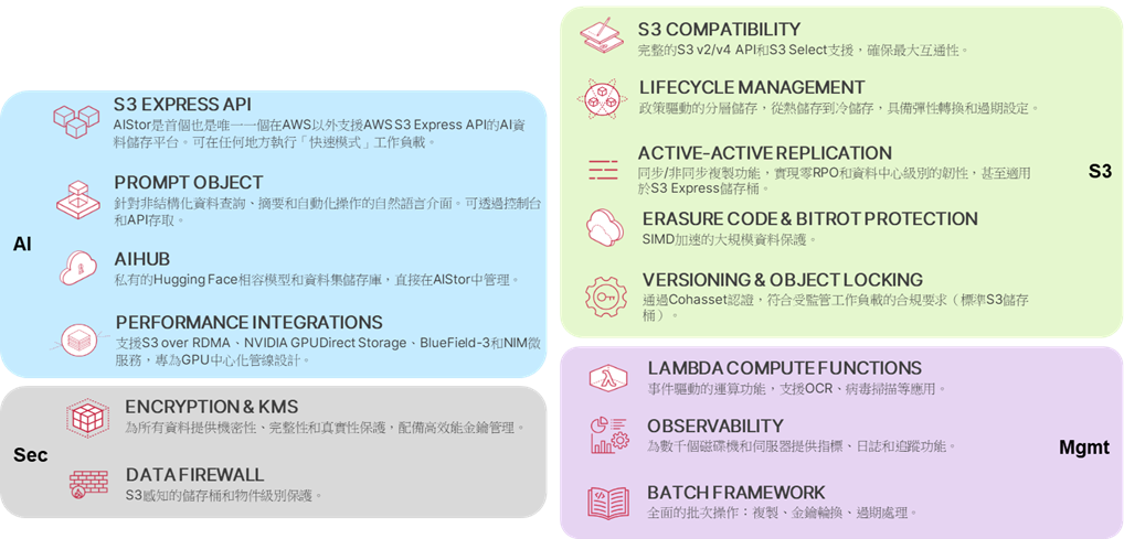 除此之外,MinIO AIStor 的一系列商業版功能,提供更強大的物件儲存功能,並進一步強化 Data Lakehouse 和 AI/ML 工作負載的管理、安全性及效能。