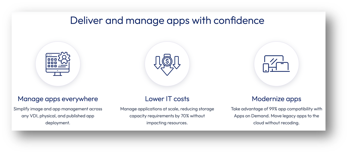 A3:Omnissa App Volumes 優點包含:大幅減少映像檔數量、加快應用程式部署與更新速度、簡化回復流程、降低儲存空間需求、提升 IT 維運效率,為企業達成節省總體成本。